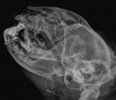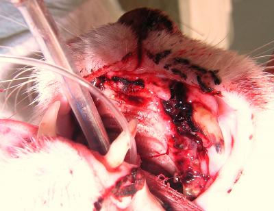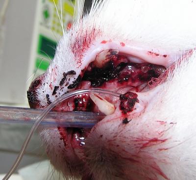 Vilibald byl přivezen na naší kliniku v podvečerních hodinách na pohotovostní ošetření po srážce s autem. Již na první pohled bylo patrné, že poranění obličeje jsou vážného rozsahu. Celkový zdravotní stav kocourka byl však v normě, proto jsme přistoupili k chirurgické rekonstrukci čelistí.