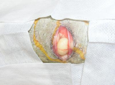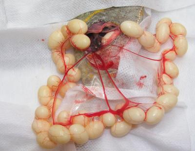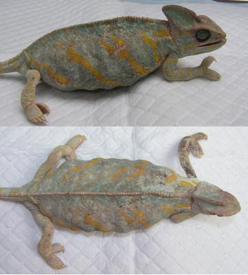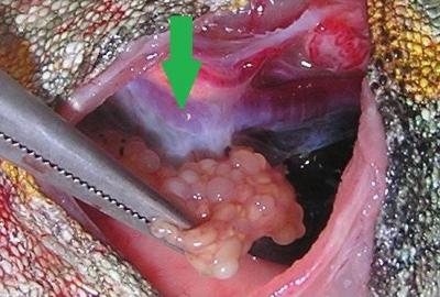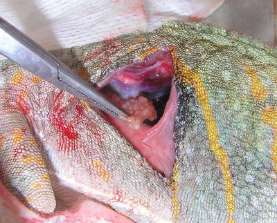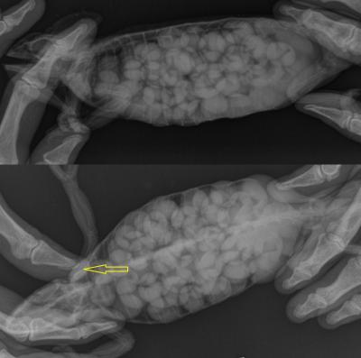 Majitelka se na kliniku dostavila s Jůlinkou proto, že 14 dní nepřijímala potravu ani nepila. Majitelka se jí proto snažila vodu alespoň kapat do pusy. Jůlinka již dvakrát kladla vajíčka, naposled před 7 měsíci. Tentokrát se jim už její stav nelíbil, protože se už nemohla ani hýbat.